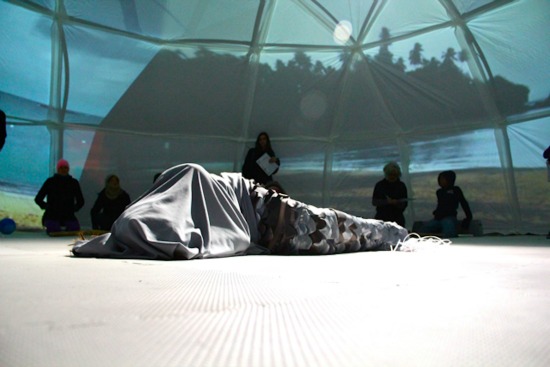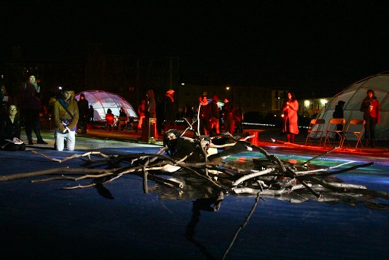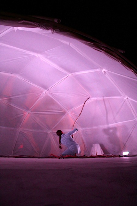 As I approached 5th and Huntingdon Streets, I was struck by the image of the lit domes and their eerie translucent glow. In the "village" I meandered from one community to another, stopping often to greet and talk to friends and fellow artists. The domes beckoned me and my stay was determined by the "warmth" that I felt and the urge to "move." - Kariamu Welsh