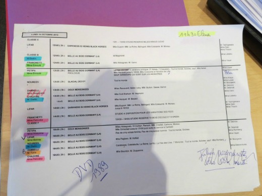 This “land grab” meeting is contentious only in the most jocular and refined way. Mediating between getting what one needs and deferring respectfully plays out with joking and laughter. It’s like a game of cards—you play them at the right time, and you choose your battles or when to fold. Of the three Maîtres de Ballet, Clotilde is the most vocal, but she is in charge of rehearsing Sleeping Beauty (La Belle au Bois Dormant) with its huge cast and myriad solos. She declares her wishes definitively, but with a Mona Lisa smile. I visualize, through her, and the other Maîtres de Ballet and their Assistants, the transmission of the art of ballet from the Sun King’s time. There is justifiable pride in this legacy. It is understood that this is the finest company, or among the finest, in the world* and that these are the people upholding its excellence.
