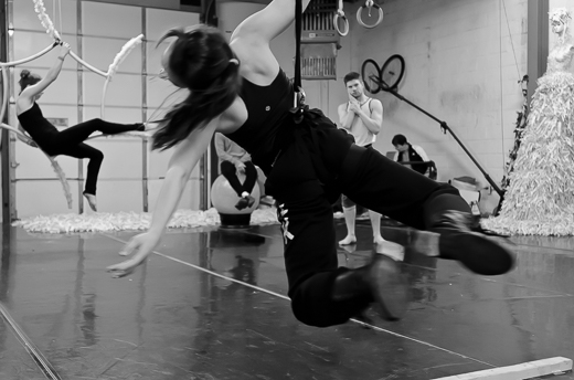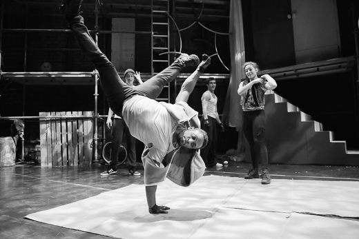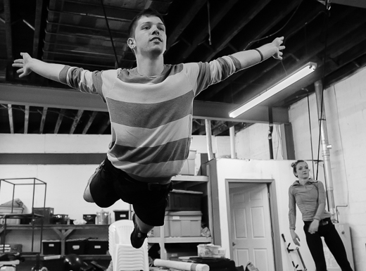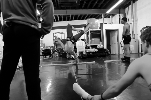 Billy Robinson does a one-arm handstand during rehearsal of Snowball in December 2013.