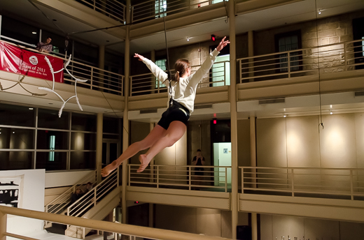 Jerrica Blankenship sails above the floor of the atrium in Hamilton Hall