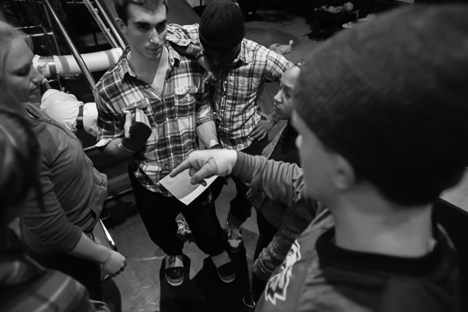 Company members consult on how to structure a part of the routine. (L-R: Jerrica Blankenship