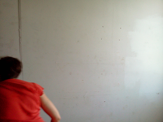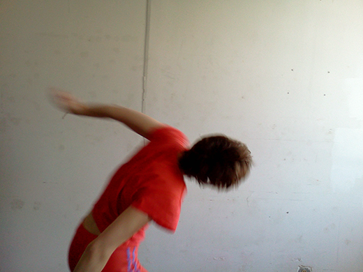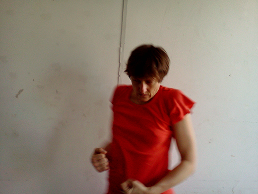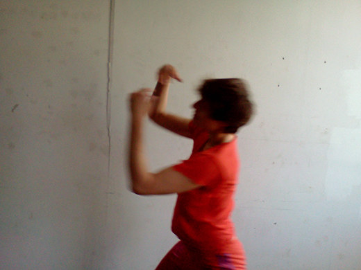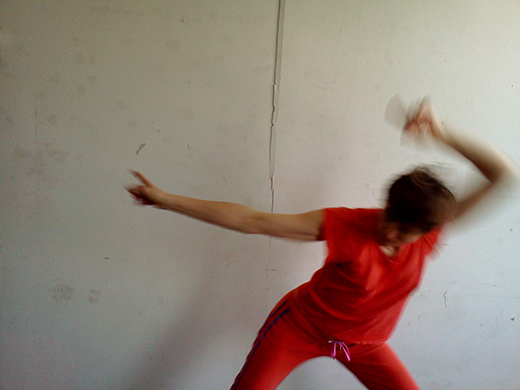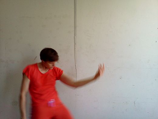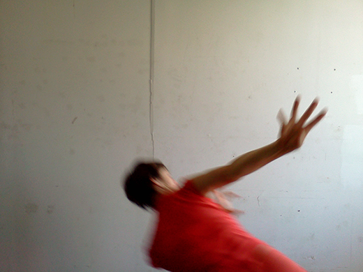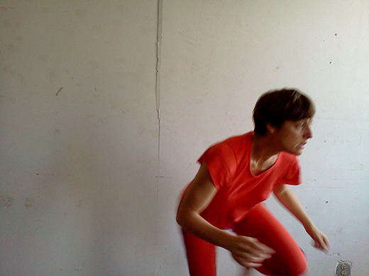 It is daytime. If I face Ditta with my back to the not-so-white wall, the grayish sunlight passes through the window and pushes softly into the left side of my face. I reign in the momentum of my larger gestures, making sure not to touch my partner or surprise her with unexpected surges. Physical contact is not part of the contract of our duet. I will not touch her, but the light touches me, and it touches her eyes, and we are connected that way. We are both doing what we do, simultaneously. I am dancing and being seen, she is looking and taking pictures.