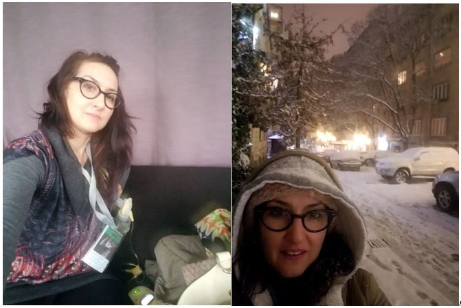 Pumping breastmilk during a break between shows and walking from a theater in a snow storm. Photos by Zornitsa Stoyanova