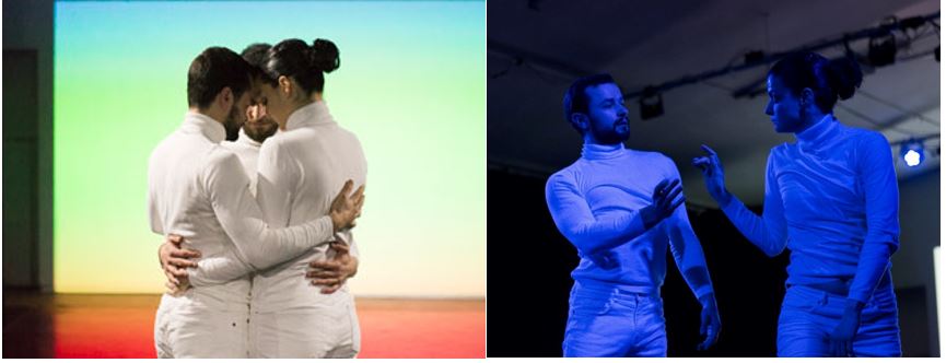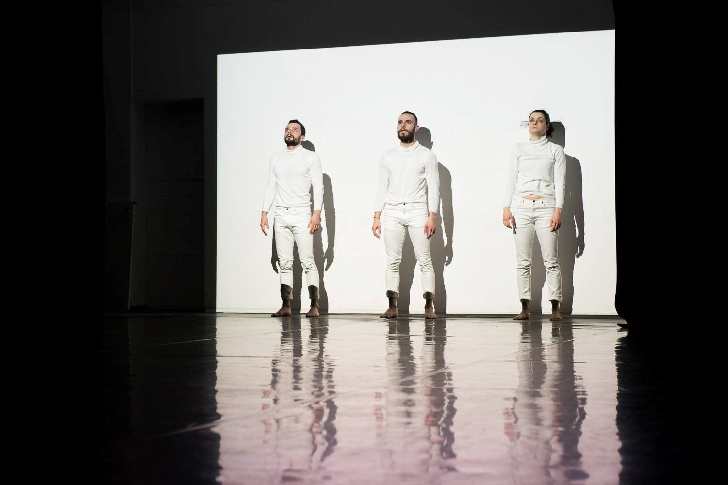 Mindfuck was predictable, but also refreshing. Maybe I was more open to this work because I knew it was a first choreographic effort. The movement was unsurprisingly similar in quality to the previous two pieces—tense bodies and fast movement shifts. I appreciated that the choreographers attempted to make a trio between two men and one woman that was not a love triangle. With abstract projection and all white costumes, floor, and walls, it contrasted with the previous two pieces’ black-clad dancers in a black box theater setting. I will be excited to see how Ushev, Zelyamov, and Doycheva continue their careers as they find their unique movement style and aesthetic.
