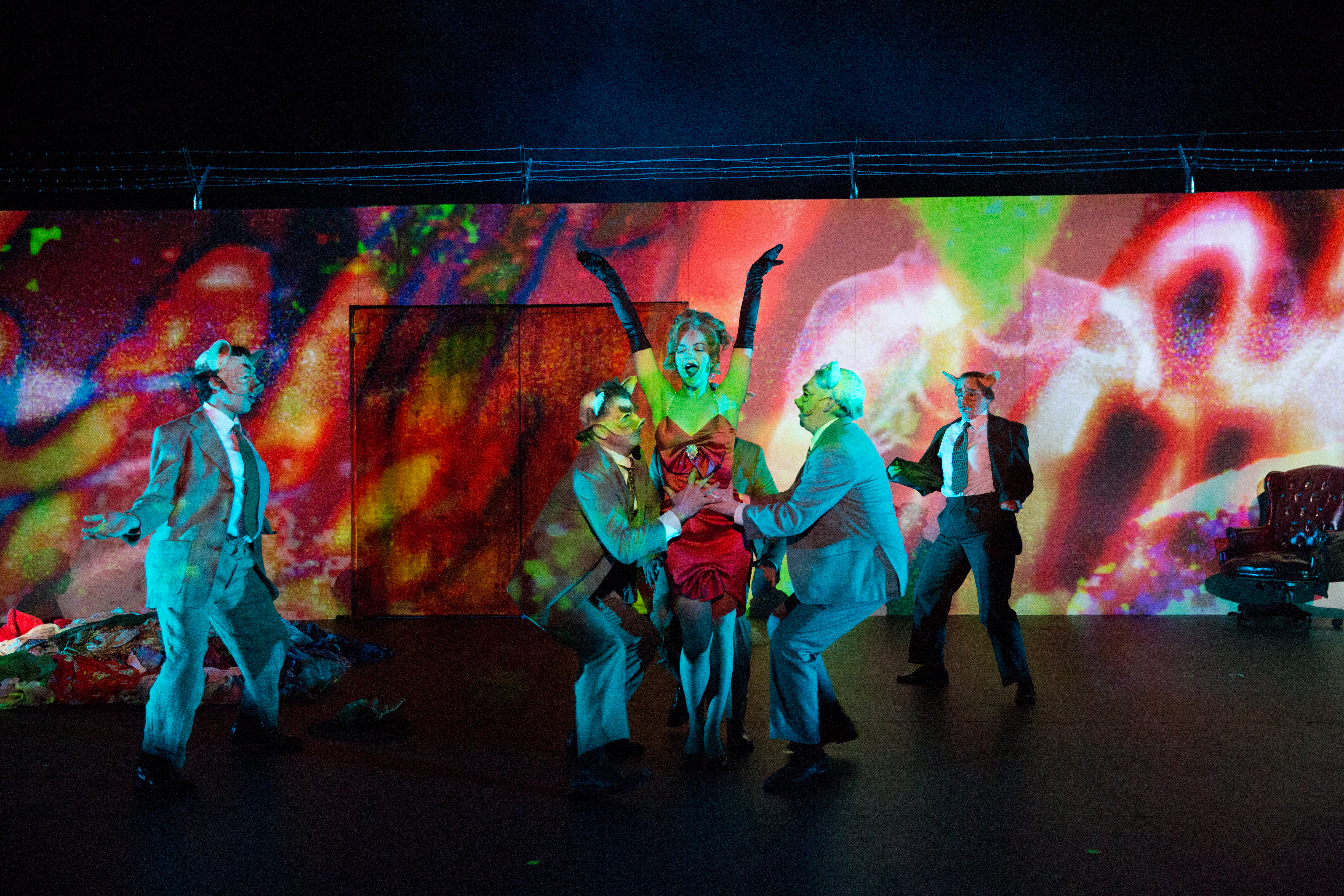 SC: To start, I have several meetings with Blanka to understand her take on the playwright. Blanka explains how she envisions the moments where some formal dance is needed, like in Romeo and Juliet there is a party group dance and some fights that I did not choreograph but rather prepared the performers for; similarly, in ADAPT! when young and old Lenka danced together to a song, or when the pigs danced with the orgasmic lady. My work in the plays is not necessarily to create formal choreography but rather to develop movement needed throughout the play, offering a movement perspective in the world created. In ADAPT! and in Romeo and Juliet there were large props coming in and out of scenes and the actors needed to become invisible at times or exuberant in others, working with those actions and qualities is when the actors needed alignment and direction, further than staging. Looking for coherent gestures, actions that connect solely to the meaning of each play are essential in Blanka’s work and it is exactly what I seek in my own work.