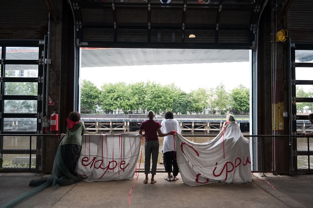 Call her by her name: Lenape Sippu was part of trade school detroit + phl, a signature program of The Philadelphia Thing, a two-week festival and artist exchange organized by Sarah Bishop-Stone. The work was co-commissioned by Philadelphia Contemporary who is supporting the continued development of the project. Though the majority of the performance was inside Cherry St. Pier, two ideas came together: drawing attention to the river’s name and an investigation into gun violence through text, movement, sound, and constructed materials.