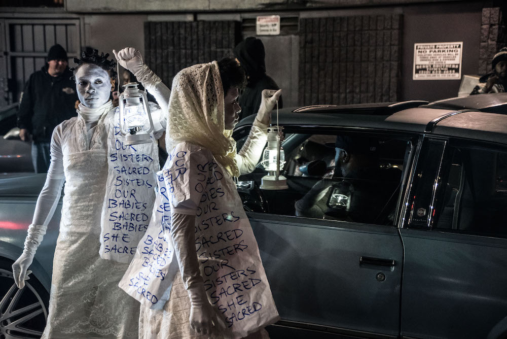 House/Full of Black Women (2017) created by Amara Tabor-Smith in collaboration with Ellen Sebastian Chang, downtown Oakland, CA, Photo © Robbie Sweeny, courtesy Amara Tabor-Smith.