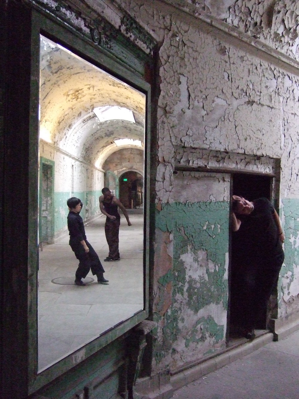 Gate (2007), Eastern State Penitentiary National Historic Site, Philadelphia, by Leah Stein, dancers: Roko Kawai, Jaamil Olawale Kosoko, David Konyk, Photo: Courtesy of Leah Stein