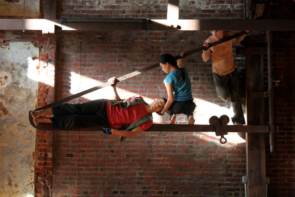 Hoist (2012), MAAS Building, Philadelphia, by Leah Stein, dancers: Jungwoong Kim, Michele Tantoco, David Konyk, Photo: Leah Stein