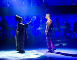 We are not in an American theater in 2012, but inside the Shrine, Fela’s nightclub in Lagos, for a final hoorah before his entourage flees Nigeria and all of its strife forever.