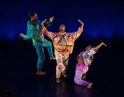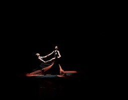 Dancers blend like chameleons with the space, moving along the ground, against the wall, and between stage lights.